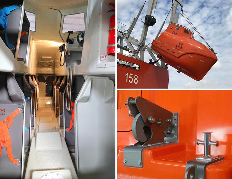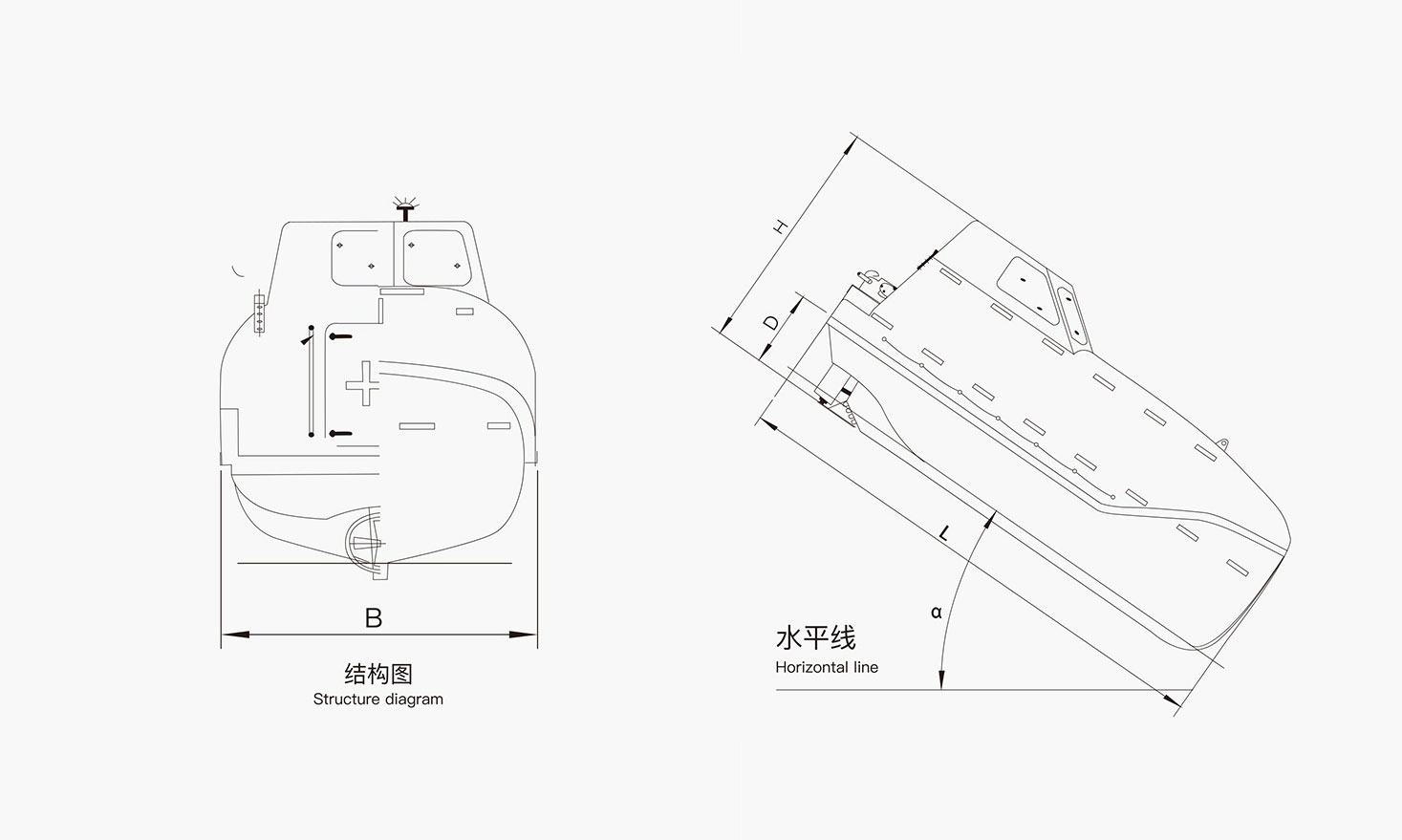 本艇的設(shè)計(jì)、制造和試驗(yàn)完全符合經(jīng)MSC.226(82)、MSC.274(85)和MSC.323(89)修正的MSC.81(70)《經(jīng)修正的就生設(shè)備試驗(yàn)建議》第1部分;1974年國(guó)際海上人命安全公約及其修正案第Ⅲ章第21、31、34條;經(jīng)MSC.218(82)、MSC.272(85)修正的MSC.48(66)《國(guó)際救生設(shè)備規(guī)則》第Ⅳ章的要求;具備救生、救助兼用功能,適合在較惡劣海況下使用,如遠(yuǎn)洋客貨輪及油輪等,同時(shí)也適用于石油鉆井平臺(tái)、軍艦平臺(tái)等。 艇體為具有高耐燃特性的阻燃型玻璃鋼;供人員行走的表面均為防滑面;艇內(nèi)裝有可排除艇內(nèi)積水手搖泵;本艇通過(guò)滑道自由降落下放,并采用吊艇索回收,自由釋放系統(tǒng)裝置是經(jīng)過(guò)特殊設(shè)計(jì)的,操作方便、安全可靠;本艇可滿載全速航行大于24小時(shí),航速可達(dá)到6節(jié)。 本艇有普通型和耐火型兩種規(guī)格,其中耐火型救生艇裝有灑水系統(tǒng),由主機(jī)水泵帶動(dòng)從艇最低處抽取海水,確保沒(méi)有易燃液體進(jìn)入系統(tǒng),灑水系統(tǒng)能提供足夠的水,噴灑于艇的表面;耐火型救生艇裝有供氣系統(tǒng),可提供足夠的的空氣滿足全體乘員和柴油機(jī)全速運(yùn)轉(zhuǎn)至少8分鐘,能在艇內(nèi)形成一個(gè)超壓狀態(tài)以阻止有毒有害氣體的進(jìn)入。